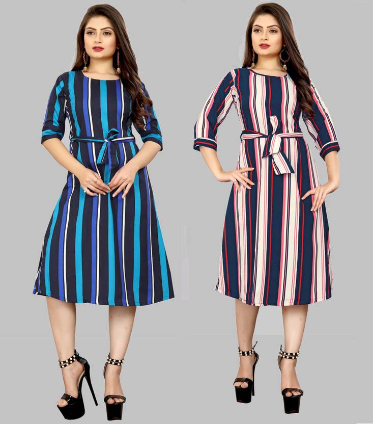This is striped printed western dress which is made of fine quality crepe fabric and also it is stitched as western look. belt which is create tredy look on your outfit. stripe printed western dress has knee length and flared dress is available it can wear causual, party, function etc it is unique in pattern and 3/4th sleeve is available fabric is soft so it is comfortable to all day. we have also manufacture wester wear dress , party wear dress , one piece dress , bodycon dress , long gown , printed kurti , straight kurti, a-line dress , floral printed dress,low price dress , light weight dress , rayon kurti , straight dress , flared dress , skater dress , striped dress , weatern dress for women ,simple indo western dress , designer , stylist , long , party , wedding , short , kee length , black , blue , casual , bollywood , indian , new , fancy , winter , frock , formal , mini , midi , plus size , beautifull , new , girls dress with unique design