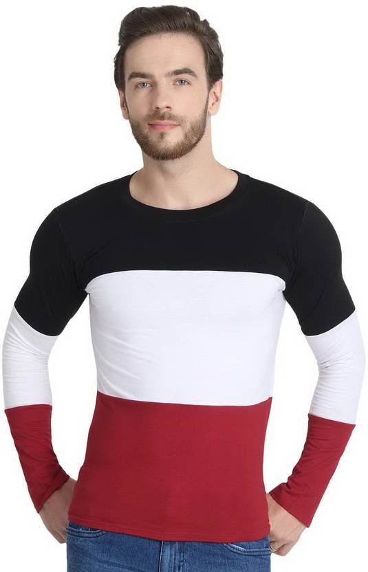 Tap in Colorblock Men Round Neck Red, White, Black T-Shirt