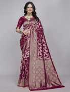 Woven from high-quality art silk using jacquard machines, this saree offers a soft yet lustrous texture that feels gentle against the skin. The graceful drape accentuates your silhouette comfortably all day long, suitable when comfort matters as much as style at weddings or grand events.