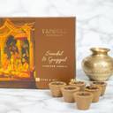 Natural Ingredients: Crafted using pure sandalwood and guggul resin for an authentic aroma., Calming Aroma: Releases a soothing fragrance that promotes relaxation and mental clarity., Purifies Atmosphere: Helps cleanse the air of negative energies and impurities., Handmade Quality: Each dhoop cup is carefully made by skilled artisans., Easy to Use: Simply light the dhoop cup and enjoy the aromatic smoke., Ideal for Meditation: Enhances focus and creates a peaceful environment during spiritual practices.