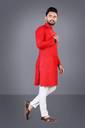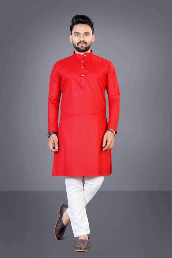 Four ths styles Men Solid Cotton Blend Straight Kurta (Red)