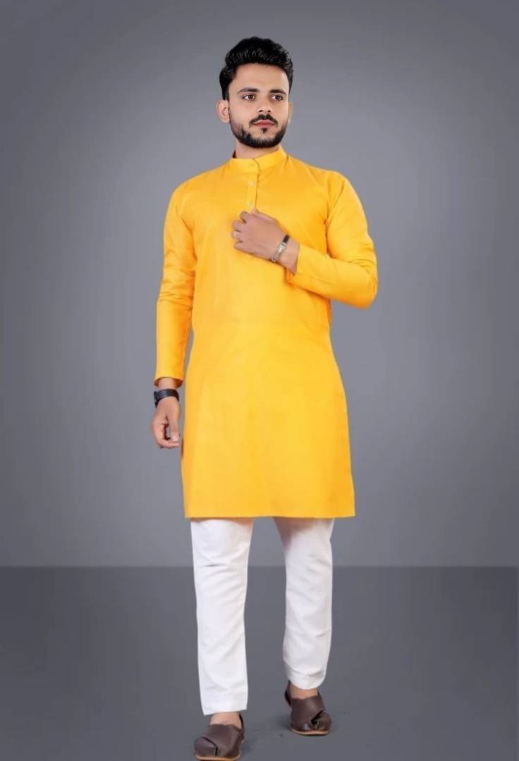 Men Solid Cotton Blend Ethnic Dress (Yellow)