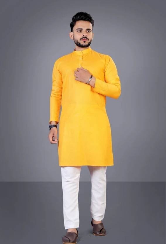 BAREESSENTIAL Men Solid Ethnic Dress Kurta (Yellow)