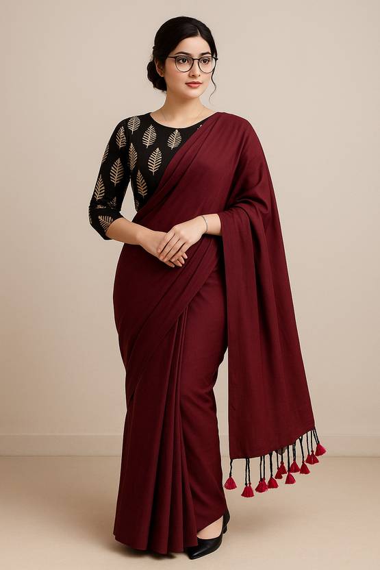 TARAMAACREATION Solid/Plain Handloom Handloom Pure Cotton Saree (Maroon)