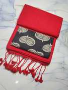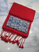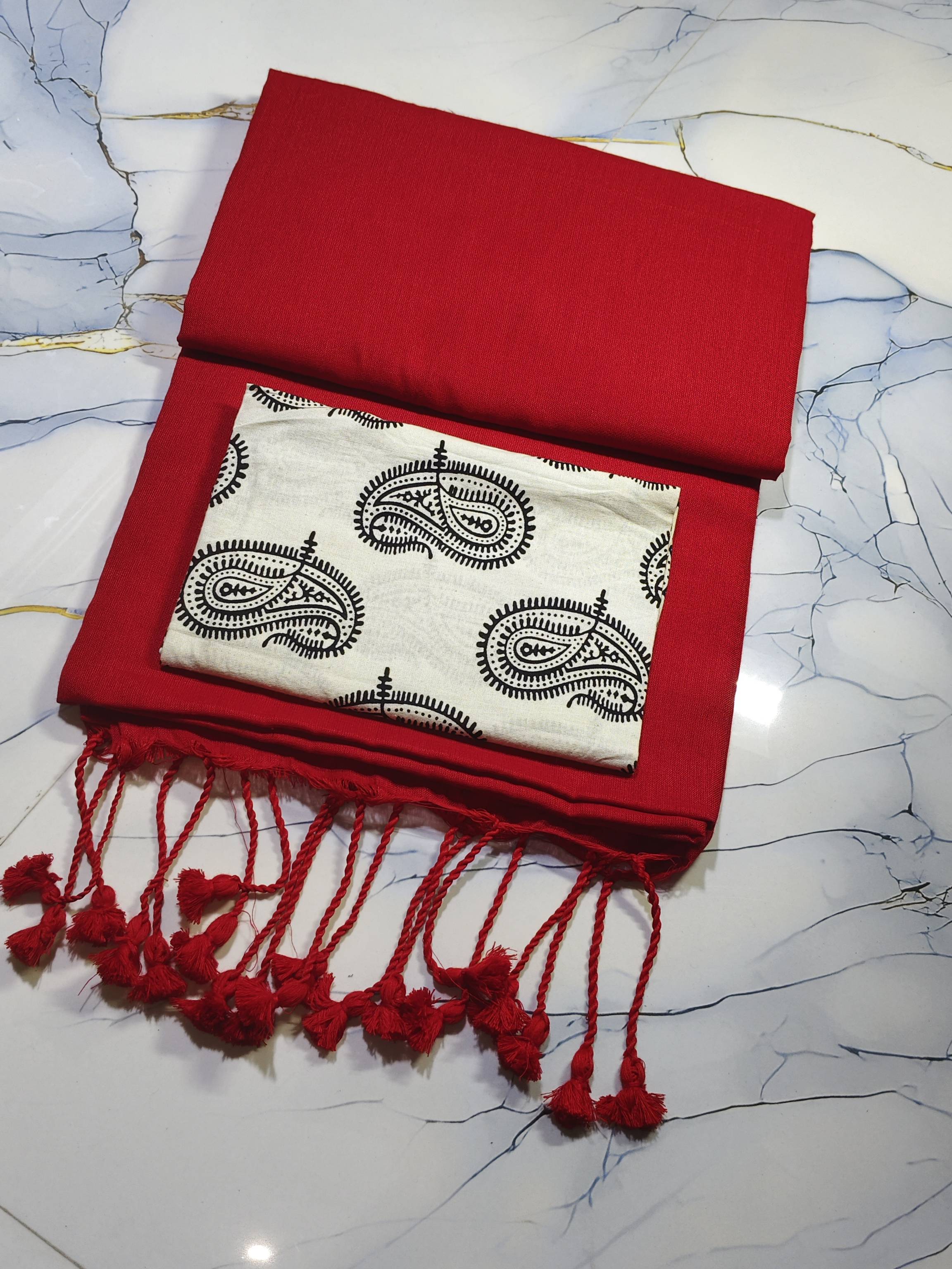 RED SAREE & WHITE ALPONA BLOUSE PIECE