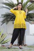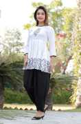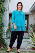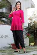 Taranjal offers you this fashionable Kurta & Dhoti Pant comes with multicolor Color Printed Anarkali Design, Exhibits 3/4th Sleeves & Round Neck ; Embellished With Dori for a versatile look & this kurta will keep you at easy all day long. Tailored from Kurta-Rayon : Dhoti Pant-Rayon Fabric