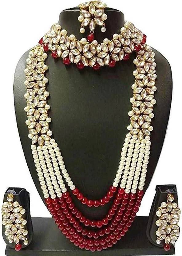 taransha Alloy Gold-plated Red, White Jewellery Set (Pack of 3)