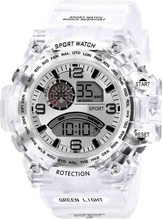 Multi-functional Full Screen Sports Digital Watch (White) - For Men & Boys
