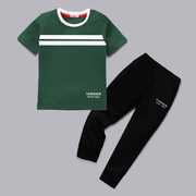 tarsier Boys Casual T-shirt Track Pants (GREENFOLD S.SLV_BLACK PANT)