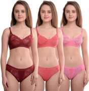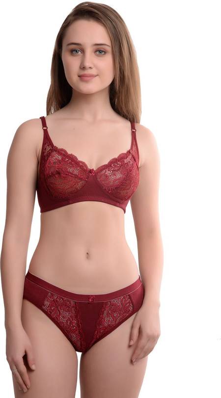 TARUPREET Bra & Panty Set Self Design Maroon Lingerie Set