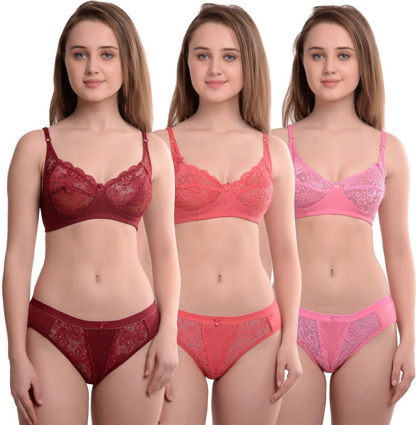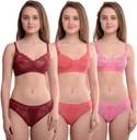 TARUPREET Bra & Panty Set Self Design Pink, Red, Maroon Lingerie Set