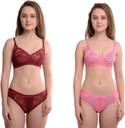 TARUPREET Bra & Panty Set Self Design Maroon, Pink Lingerie Set