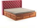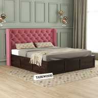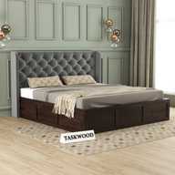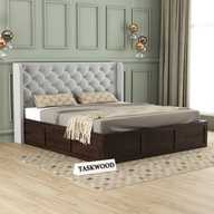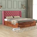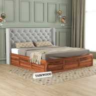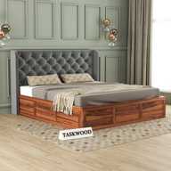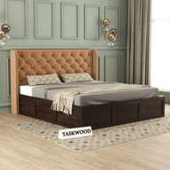 Taskwood Furniture Solid Wood Queen Size Bed With Fabric Headboard And Box Storage For Bedroom Solid Wood Queen Box Bed (Finish Color - Honey Teak Finish, Delivery Condition - DIY(Do-It-Yourself))