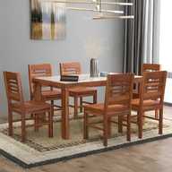 Taskwood Furniture Solid Wood White Marble Top Finish Six Seater Dining Set For Dining Room Solid Wood 6 Seater Dining Set (Finish Color -Honey Teak Design 4, DIY(Do-It-Yourself))
