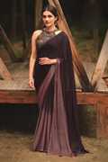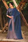 "Step into a world of enchantment with our mesmerizing 3D Velvet Chiffon Saree, accompanied by a dazzling Sequence Blouse adorned with Sarowski work. Crafted to captivate, this ensemble combines the luxurious texture of velvet with the ethereal grace of chiffon, creating a spellbinding effect. The intricate Sarowski work on the blouse adds a touch of opulence and sophistication, ensuring you stand out at any event or celebration. Elevate your style to new heights with this exquisite combination of elegance and allure. Available exclusively , it's the epitome of haute couture for those who crave luxury and glamour."