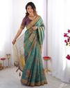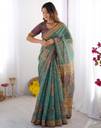 This saree from the house of Tasrika is made from Linen and is Teal Blue, Multi in color. Tasrika Ethnic Sarees comes With Blouse Piece,Which can be Stitched according to Your Taste and Preference.This Saree is Crafted by Skill Craftsmen without Compromising on its Quality.With This Beautiful Design and Fabric, This Saree will fetch You Oodles of Compliments and Praise. saree fit size is 5.50Mtr saree & 0.80Mtr blouse, Free Size .