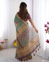 Explore the collection of beautifully designed sarees from Tasrika Sarees On Flipkart. Saree Fabric : Linen & Blouse Fabric : Linen :: Saree Color : Teal Blue & Blouse Color : Dusty Purple, Multi :: Saree Work :Kalamkari Printed, Handloom Zari Weaving, Tassels (Dual Tone) & Blouse Work : Printed, Handloom Zari Weaving