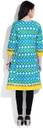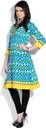 Women Geometric Print Cotton Blend A-line Kurta (Light Blue, White, Green)