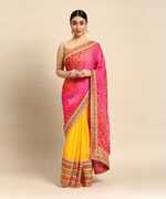 This Bandhani Saree with Lace Border is a celebration of traditional Indian craftsmanship and vibrant design. Bandhani, known for its intricate tie-dye patterns, adorns the lightweight fabric of this saree, creating a striking visual appeal. The lace border adds a touch of elegance and contrasts beautifully with the vibrant hues of the saree. Accompanied by an unstitched blouse piece, this ensemble allows for customization to fit individual preferences perfectly. Ideal for festive occasions and cultural celebrations, this saree embodies timeless beauty and cultural heritage, making it a cherished addition to any wardrobe.
