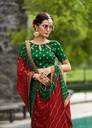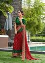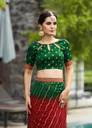 This saree is crafted from fine georgette adorned with a peddling foil bandhani print, creating a vibrant and textured look. It features a classic gotta jari border, adding a touch of traditional elegance and sophistication. The ensemble is complemented by an excellent Banarasi blouse, renowned for its intricate weaving and luxurious feel. Together, they create a graceful and timeless attire, perfect for celebrating both tradition and contemporary style.