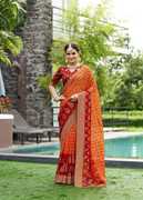 Mejor georgette Peddling foil bandhani print With classic gotta jari border And excellent banarashi blouse