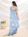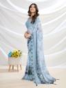Pure Georgette Thread Embellished Digital Printed Sari With Tassels