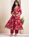 Tasrika is well known brand of amazing range of women's ethnic wear in soft and solid colors that looks perfect for any occassion.With beautiful designs and patterns our apparels are very stylish and comfortable too.Get rid of the 'regular' look this season wearing this trending ethnic set by Tasrika.This Floor Length Pink, Multi colored Floral Printed, Embroidery Lace, Tassels ethnic set will comes with 3/4 Sleeve and V Neck Cotton kurta , Rani Pink Cotton bottom and Pink color Foil Printed, Gota Lace Cotton dupatta.Kurta Fabric : Cotton , Bottom Fabric : Cotton , Dupatta Fabric : Cotton :: Kurta Work : Floral Printed, Embroidery Lace, Tassels , Bottom Work : Dyed , Dupatta Work : Foil Printed, Gota Lace :: Kurta Color : Pink, Multi , Bottom Color : Rani Pink , Duptta Color : Pink :: Bottom Waist Type : Half Elastic :: Tye : Anarkali Kurta:: Bottom & Dupatta Set