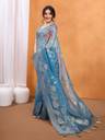 Cotton Blend Rich Pallu Banarasi Woven printed Sari
