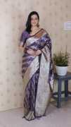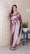 Explore The Collection Of Beautifully Designed Saree. Saree: Purple || Saree Work: Zari Woven work || Saree Fabric: Cotton Silk | Blouse Fabric: Cotton Silk|| These Saree Are Perfect For Occasions And Events Anytime Of The Day Or Night.