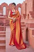 Have this beautiful piece of clothing with the right pattern, styles, designs, cuts, lengths and colours that match your style. This can be worn on various occasions such as parties, weddings, business meetings, festivals, lunches, dinners and so on. The draping styles and texture of materials used can change its overall look. This is made of different materials and many of others sarees are designed with various embroidery styles. At saris are also available in various types such as georgette, chiffon, silk, crepe, cotton, bandhani, designer, bollywood, wedding and bridal. The Indian garment that always remains in vogue is the saree. It adds grace and elegance to your personality and makes you feel beautiful effortlessly. Shop online at storefront for a huge range of Sarees.Choose sarees based on the occasion. Maintain the classy, smart yet stylish look at work with our range of sarees in crepes, silks and evergreen prints. Sarees in chiffon , net and georgette can add a little sophistication for lighter evening