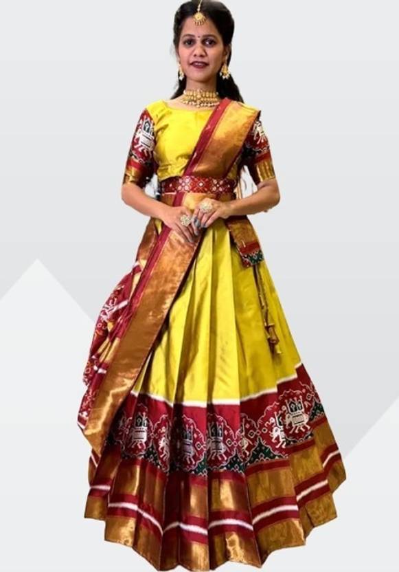 Printed Semi Stitched Lehenga Choli (Yellow)