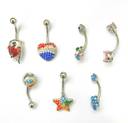 Tattoo gizmo Stylish Stainless Steel Piercing Jewelry Set of 7 Crystal Belly Button Rings Stainless Steel Charm Set (Pack of 7)