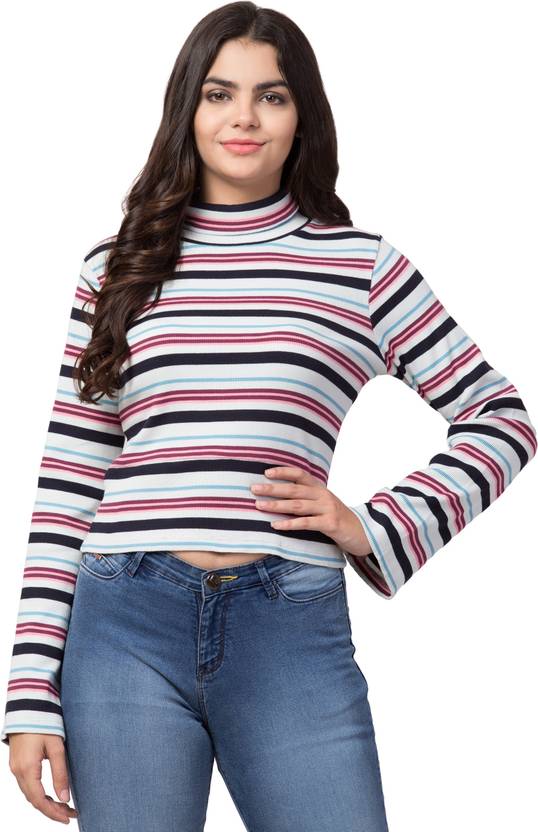 Casual Regular Sleeves Striped Women Multicolor Top