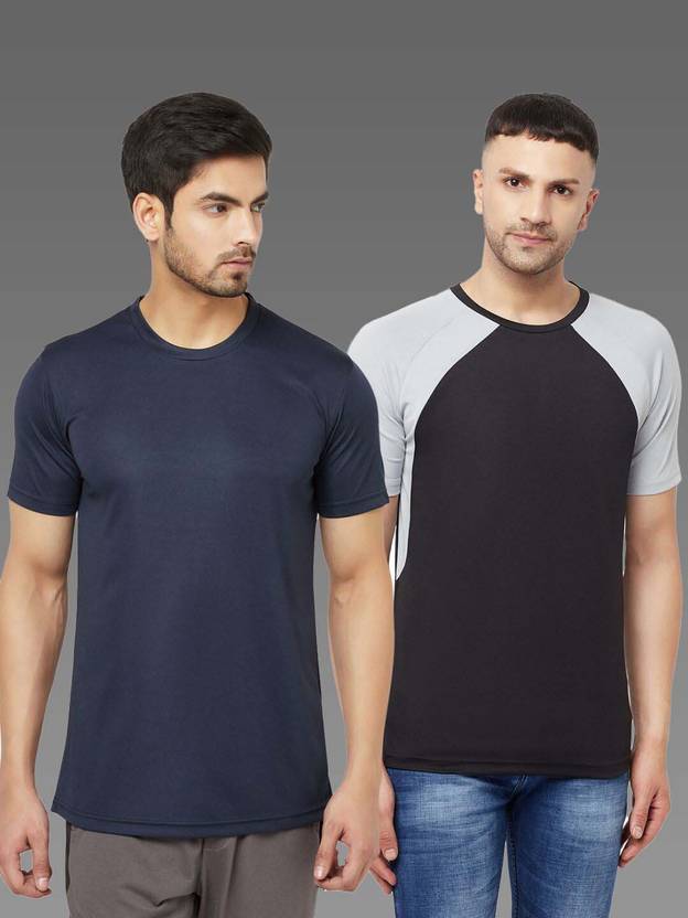 TAZO Pack of 2 Men Colorblock Round Neck Polyester Multicolor T-Shirt