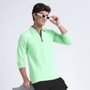 TB Blue Solid Men Zip Neck Light Green T-Shirt