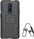 RRTBZ Tough Heavy Duty Shockproof Armor Defender Dual Protection Layer Hybrid Kickstand Back Case Cover for OnePlus 7 Pro with Redtooth Headset Headphones -Black
