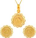 A sight for sore eyes, this Pendant set from TBZ - The Original features such a distinguishing design that it is impossible to take your eyes off it. Made in 22 KARAT Yellow Gold this Pendant set gives way to an exquisiteness that is hard to forget. Get yourself a regal look with this enchanting pendant set.