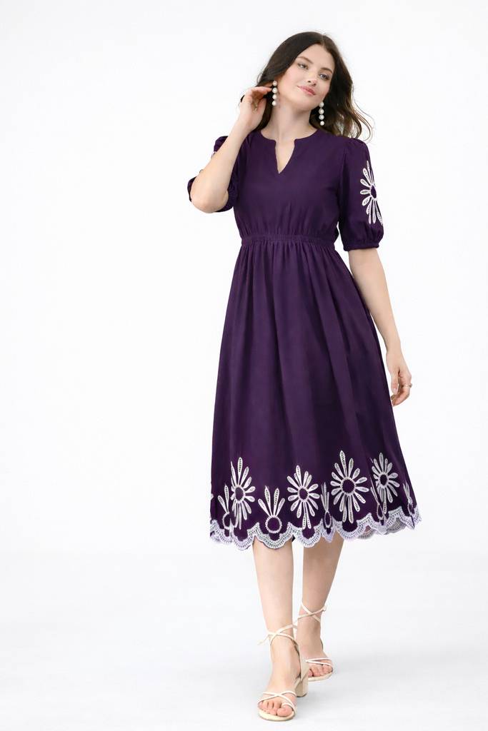 Solid, Embroidered Cotton Blend Stitched Flared/A-line Gown (Purple)