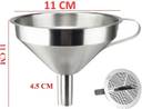 ? Large 11 CM Funnel with Detachable Strainer – Featuring an 11 cm wide opening, this multipurpose funnel is ideal for pouring liquids, oils, and dry ingredients. The removable strainer efficiently filters solids, making it perfect for homemade juices, broths, or infused oils.