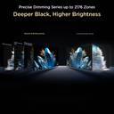 The Precise Dimming series refers to a Mini LED TV with all-domain halo control technology. The new generation of powerful light-emitting chips, super condensed Micro lenses, and micro-OD make the light shape of individual zones more perfect, and its halo control ability is several times that of ordinary zones. Combined with the CSOT HVA panel with a higher native contrast ratio and the world's leading light and shadow control algorithm, the Precise Dimming series shapes the real light and shadow so that the TV's comprehensive picture quality performance is dramatically improved compared to ordinary TVs, bringing an upscale image experience.