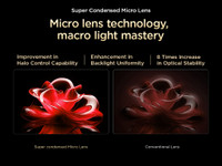 TCL's self-developed super condensed micro lens technology precisely controls light direction through its arch bridge dimming design. Its selection of nano-optical materials with greater plasticity forms a golden curvature with super light-focusing properties, and precisely controls light point by point, greatly improving the backlight uniformity and halo control capabilities, making the picture details clearer.