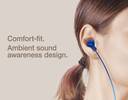 To ensure long-term comfort, this headset’s design has been based on a detailed study of the human ear canal. Its uniquely angled and oval-shaped ear tips adapt to your ear’s form with ease, ensuring a snug fit.