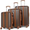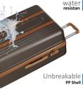 Lightweight Hard-Side 3-Piece Luggage Set: This versatile set includes small (55 cm), medium (65 cm), and large (75 cm) sizes, all crafted from unbreakable polypropylene for exceptional protection during your travels. The small cabin luggage is designed to carry up to 10-15 kg of weight and can accommodate materials for a short trip of 2-3 days. The medium-sized luggage can carry up to 20-25 kg of weight and is suitable for a week-long trip or longer. The large-sized luggage can carry up to 25-30 kg of weight and is ideal for extended vacations of 10 days or more.Secure Number Lock: Enjoy worry-free travels with the built-in number lock on the Teakwood Leathers. This feature provides enhanced security, allowing you to keep your belongings protected and giving you peace of mind throughout your journey.: Designed with 360 degree multi-directional wheels that allow your suitcase to glide alongside you effortlessly and a telescopic handle for smooth mobility. Includes a convenient top pick-up handle across all sizes and an additional side pickup handle in check-in luggage for easy lifting and carrying.