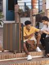 One handle on the top and one on the side, has a retractable handle on the top and eight 360-degree rotatable corner-mounted skate wheels
