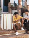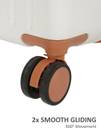 One handle on the top and one on the side, has a retractable handle on the top and eight 360-degree rotatable corner-mounted skate wheels
