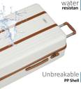 Lightweight Hard-Side 3-Piece Luggage Set: This versatile set includes small (55 cm), medium (65 cm), and large (75 cm) sizes, all crafted from unbreakable polypropylene for exceptional protection during your travels. The small cabin luggage is designed to carry up to 10-15 kg of weight and can accommodate materials for a short trip of 2-3 days. The medium-sized luggage can carry up to 20-25 kg of weight and is suitable for a week-long trip or longer. The large-sized luggage can carry up to 25-30 kg of weight and is ideal for extended vacations of 10 days or more.Secure Number Lock: Enjoy worry-free travels with the built-in number lock on the Teakwood Leathers. This feature provides enhanced security, allowing you to keep your belongings protected and giving you peace of mind throughout your journey.: Designed with 360 degree multi-directional wheels that allow your suitcase to glide alongside you effortlessly and a telescopic handle for smooth mobility. Includes a convenient top pick-up handle across all sizes and an additional side pickup handle in check-in luggage for easy lifting and carrying.