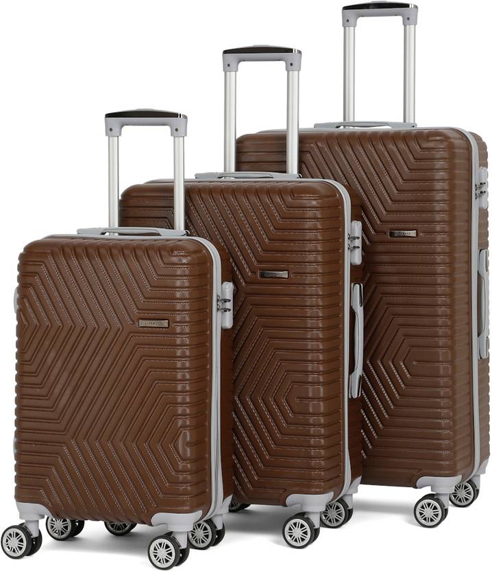 Teakwood Leathers Unisex Hard Sided Trolley Bag Set of 3 (Small 55cm | Medium 65cm | Large 75cm) Cabin & Check-in Set 8 Wheels - 30 CM
