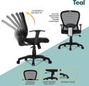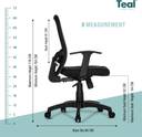 - Frame Material: Glass Filled Nylon Structure with Breathable Mesh | Color: Black | Size: Mid Back | Swivel: 360? swivel | Tilt Lock | Gas-lift : Class 4 | Base: Heavy Duty Metal Base | Castors:Nylon Wheels | PU padded Armrest (Surface Soft) | Maximum Weight Capacity: Upto 125Kgs | Height Suitability Upto 5'10