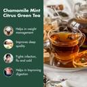 • We bring to you the blend that refreshingly soothens your nervous system , Chamomile green tea. Prepared with premium ingredients, this blend never fails to be the perfect partner for the day.