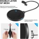 Microphone Pop Filter, for Blue Yeti, Blue Snowball - Flexible Gooseneck Microphone Mount and Double Layer Sound Shield Guard